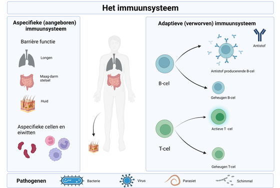 Dit is een versimpelde weergave van het immuunsysteem. Deze afbeelding is gemaakt via BioRender.com.